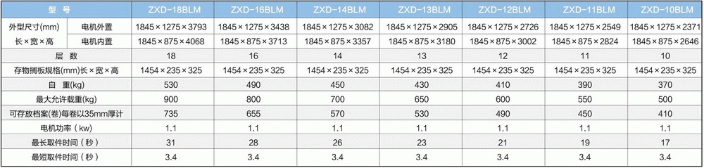 聯(lián)網(wǎng)上下電動(dòng)門自動(dòng)選層檔案柜主要技術(shù)參數(shù)(A4紙型)