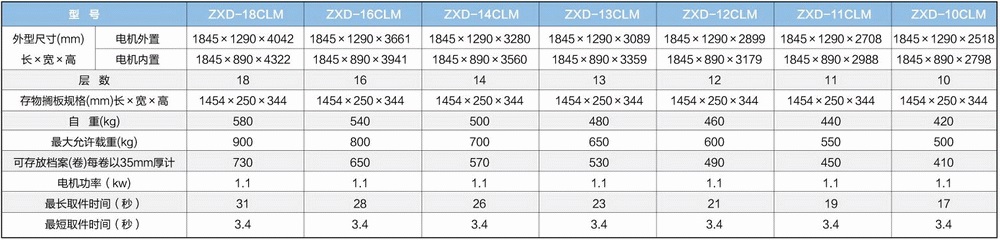 聯(lián)網(wǎng)上下電動(dòng)門自動(dòng)選層檔案柜主要技術(shù)參數(shù)(A4紙型)